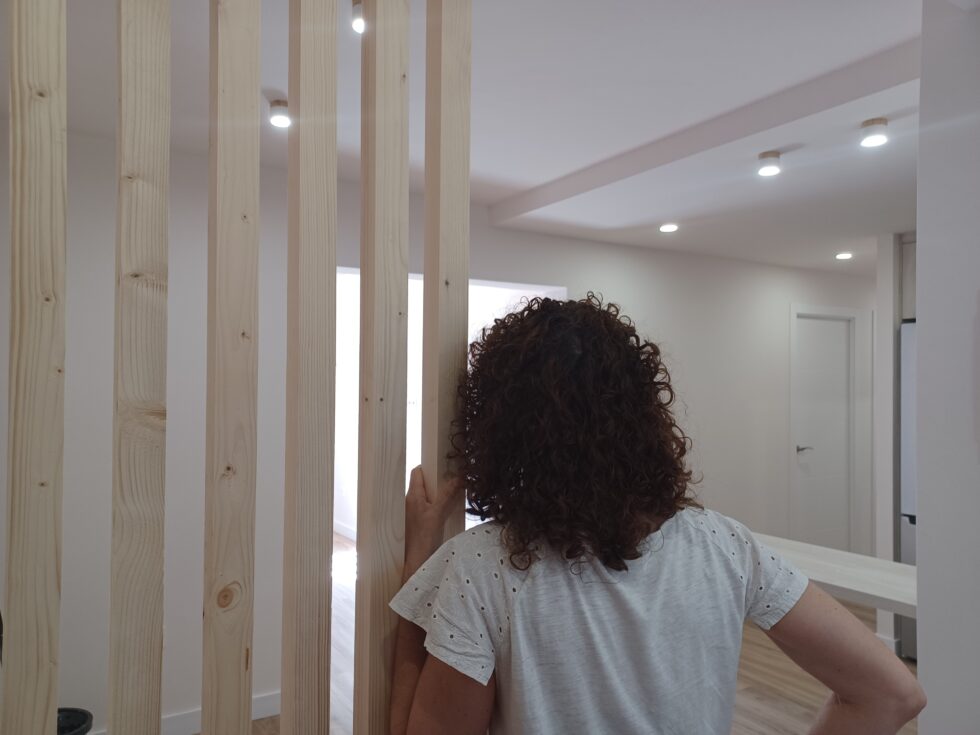 En esta intervención nuestro mayor propósito fue el de mejorar la calidad de vida de una usuaria con minusvalía visual. Hemos creado un ambiente diáfano, integrado y luminoso; atendiendo especialmente a sus necesidades.