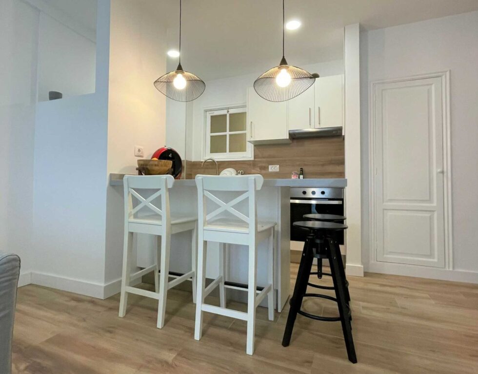 Para lograr esa apertura, se han derribado tabiques innecesarios en zonas concretas, como en el acceso y en la cocina, donde se ha abierto al máximo el espacio.